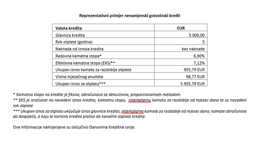 Reprezentativni primjer nenamjenski gotovinski kredit